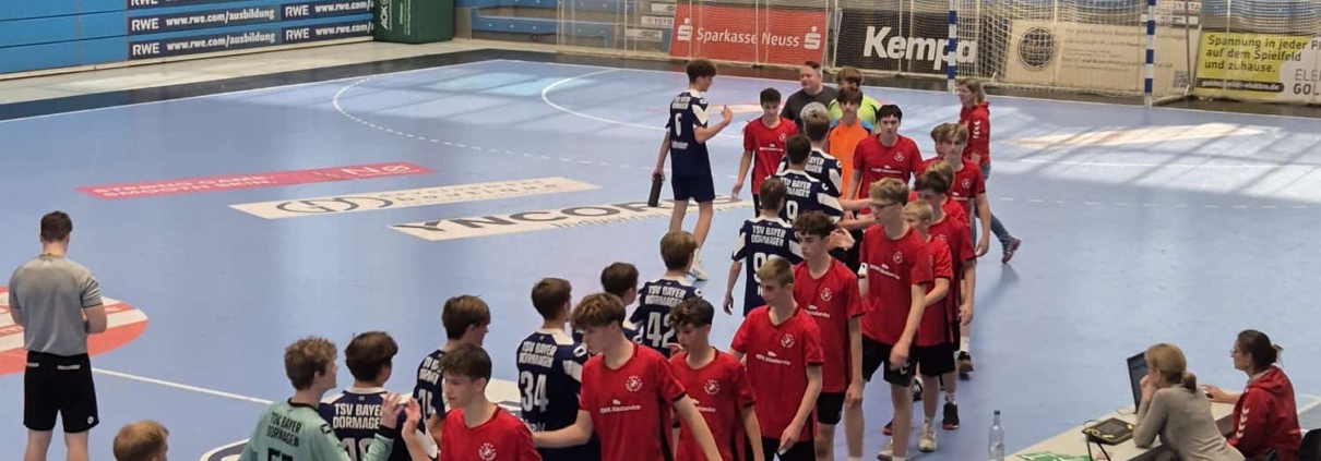 Danach war die Partie länger ausgeglichen, Dormagen kam auf 4 Tore wieder ran – bevor wir dann mit mehr Auswechselspielern nochmal neue Power aufs Feld bringen konnten und die sichtlich müder werden Gastgeber am Ende mit 25:35 besiegen konnten.